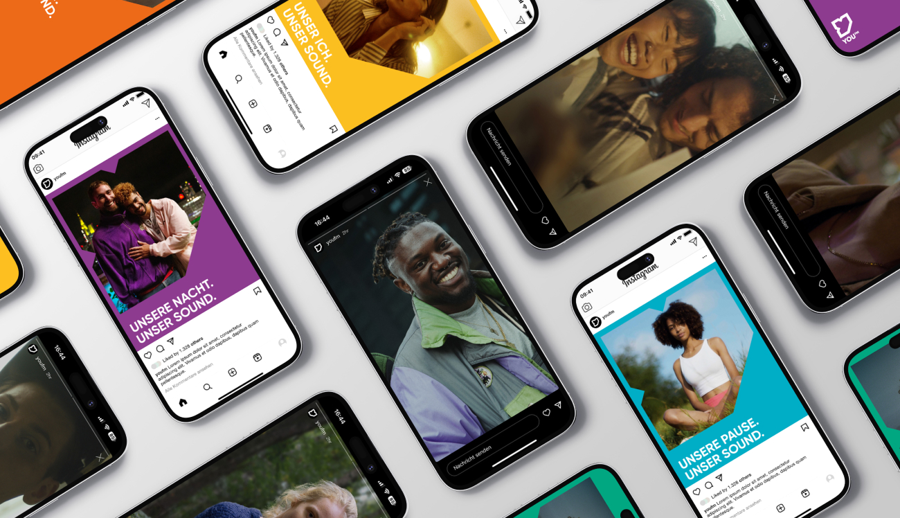 Lange her, dass Radio das Medium der Jugend war: die hört heute Musik und Podcasts via Spotify und Konsorten. Um da als Radiosender mitzuspielen, braucht es neben dem richtigen Programm auch einen aktuellen Look & Feel, in dem sich die junge Zielgruppe wiederfindet – dank Internet ist Radio ja längst auch zum visuellen Medium geworden. Unser Corporate Design gibt You FM das junge, attraktive Gesicht, das Jungenradio heute braucht.